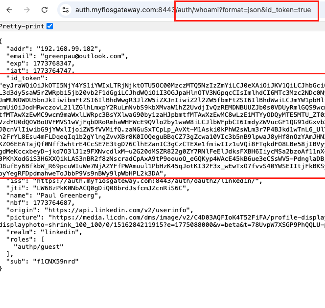 Profile UI uses /auth/whoami?format=json&id_token=true endpoint.