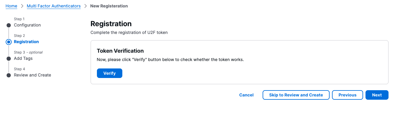 Once the registration is saved, you must test it. Click the Verify button to initiate a test authentication challenge.