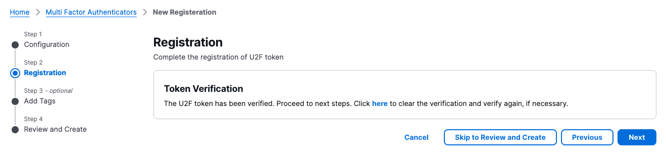 A "Token Verification" success message will appear. Click Next to move to the final review stage.